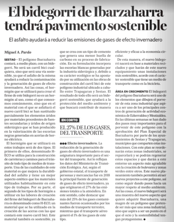 El bidegorri de Ibarzaharra tendrá pavimento sostenible