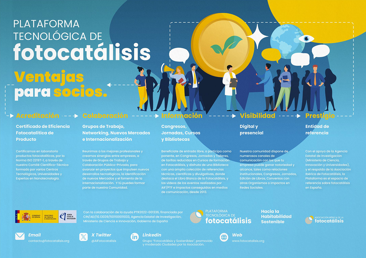 La Asociación Ibérica de la Fotocatálisis ofrece diferentes modalidades de asociación destinadas a dar cabida a todas las personas y entidades que quieran sumar esfuerzos.