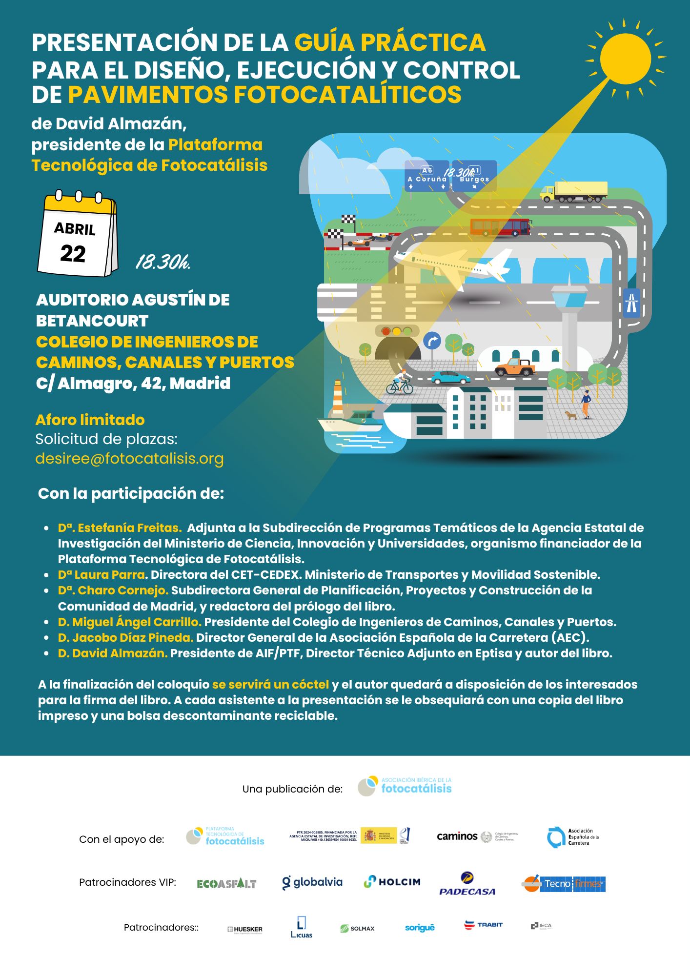 Desde la Asociación Ibérica de la Fotocatálisis (AIF) y la Plataforma Tecnológica de la Fotocatálisis (PTF) anunciamos la incorporación de Holcim como Patrocinador VIP del evento de presentación de la Guía Práctica para el Diseño, Ejecución y Control de Pavimentos Fotocatalíticos, que tendrá lugar el próximo 22 de abril en Madrid.