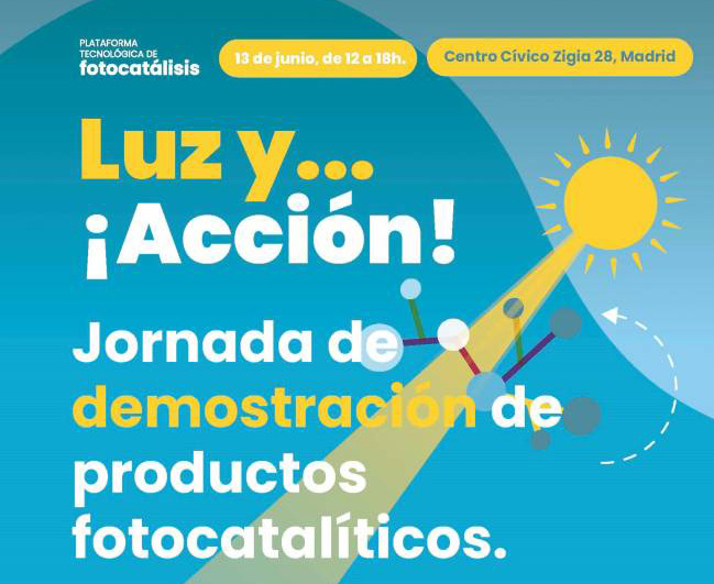 La Plataforma Tecnológica de la Fotocatálisis convoca a los medios de comunicación, empresas y entidades interesadas en este campo a una jornada en la que se expondrán diversos productos y procedimientos fotocatalíticos en tiempo real, para poder visualizar su ¡ACCIÓN! gracias a la ¡LUZ!
